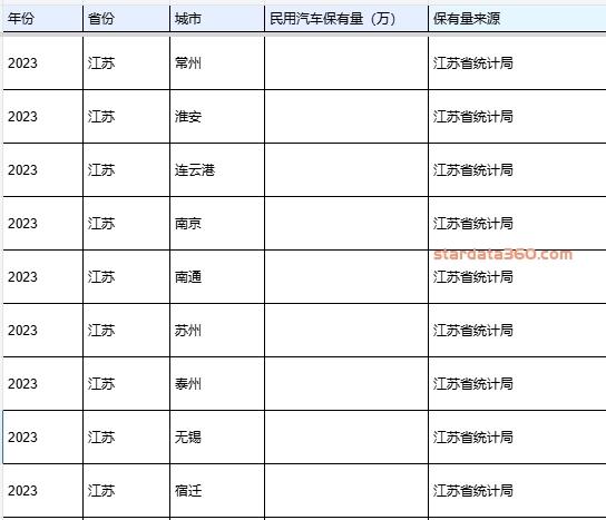 2023江苏各市汽车保有量(摘录)